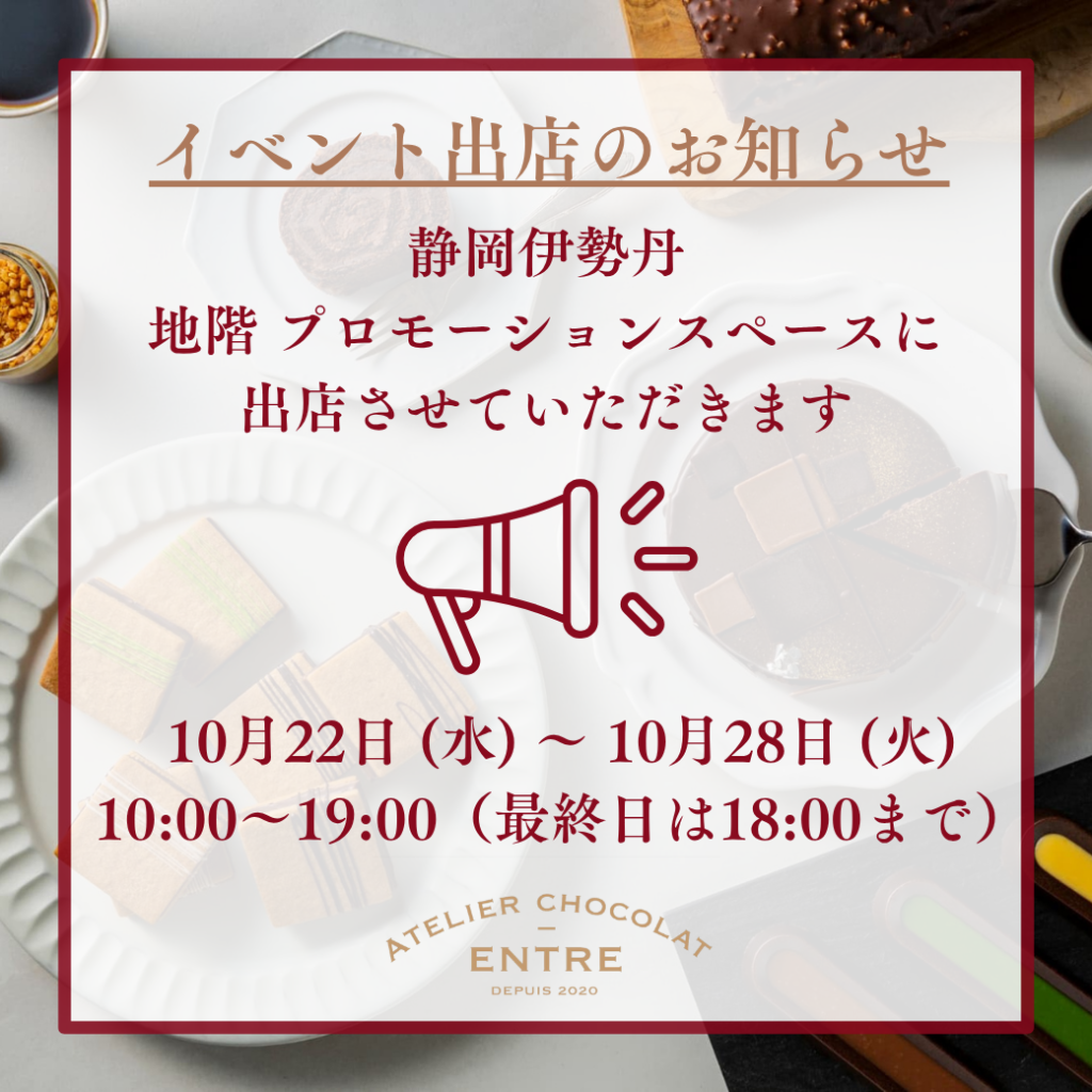 【10/22~10/28】静岡伊勢丹 地階に出店いたします
