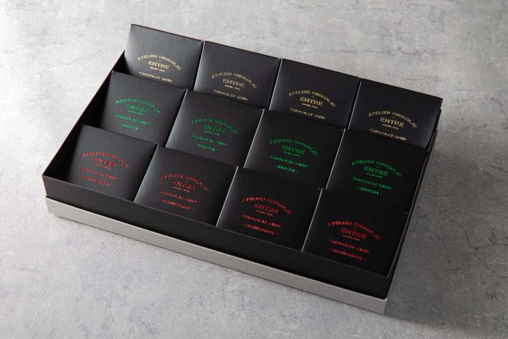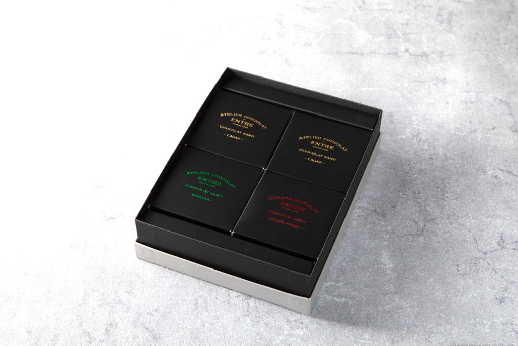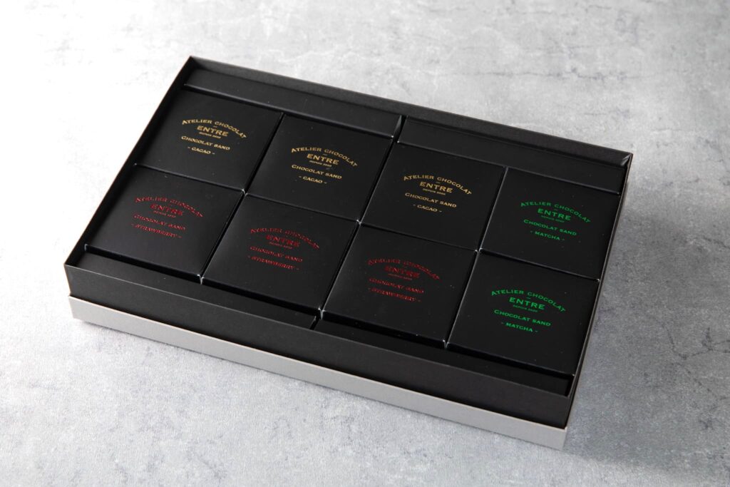ショコラサンドはカカオ、抹茶、静岡紅ほっぺの3種、